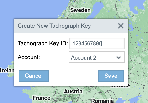 Enter tachograph number and select Account