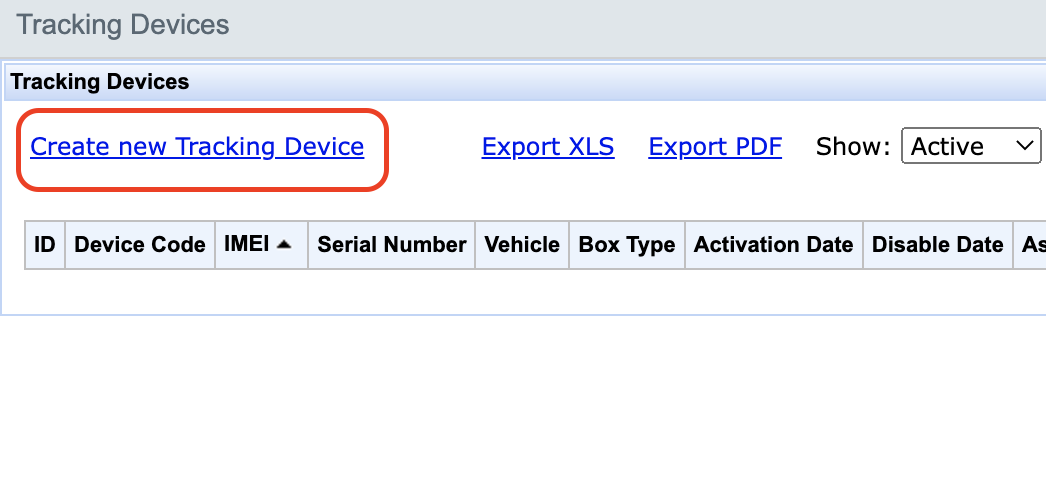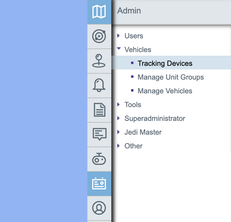 Open menu Admin -> Vehicles -> Tracking Devices