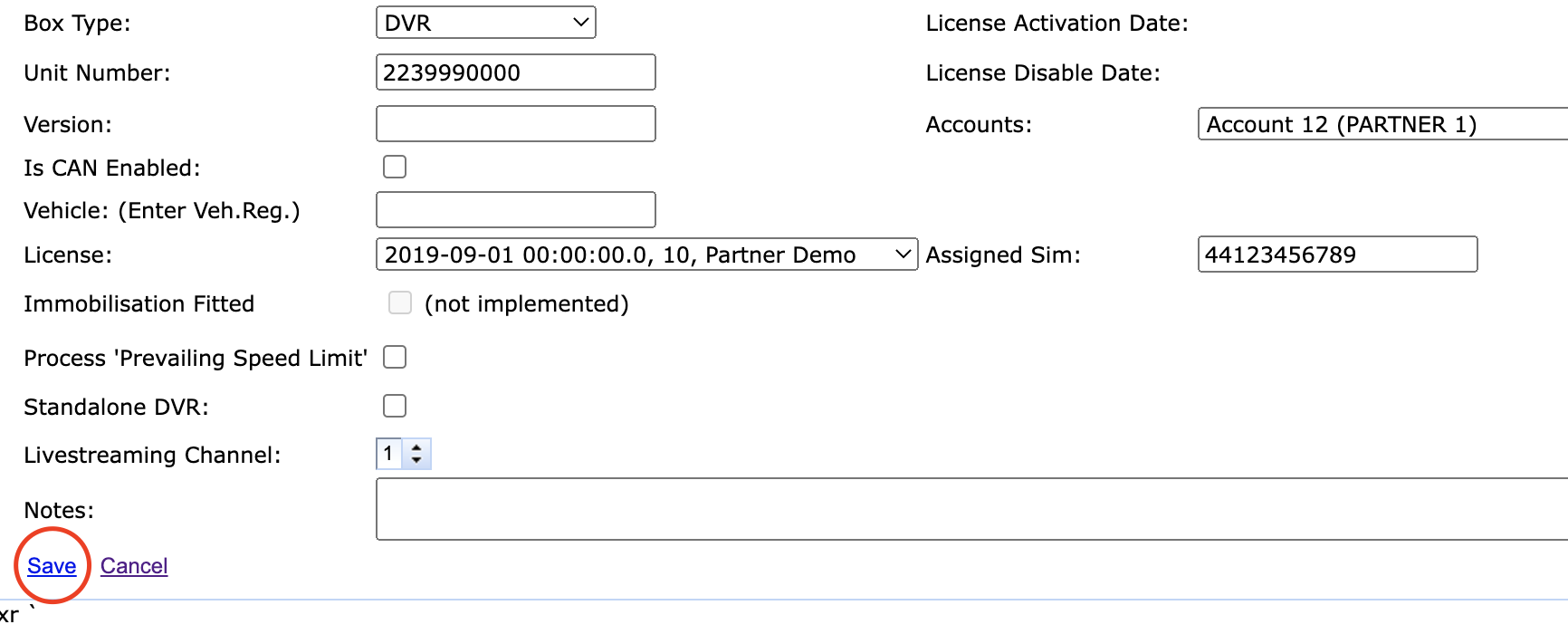 Enter IMEI of tracking device in "Unit Number:" field.