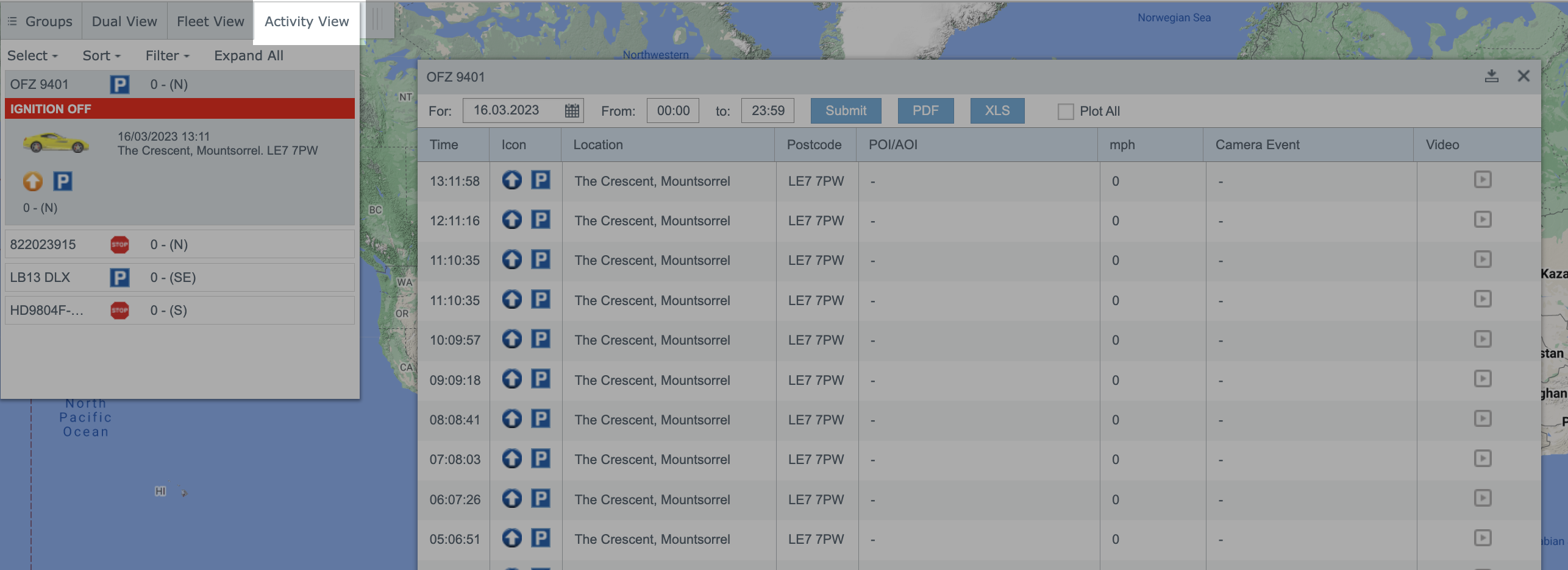 2nd way: click on Activity View tab and select a vehicle: