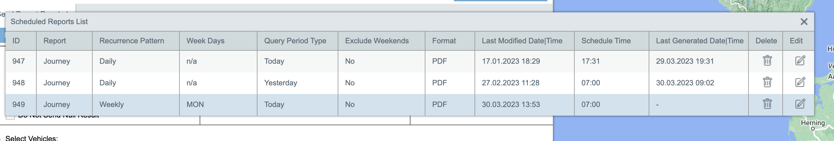 Created report is shown in the Reports List. Click on button “Scheduled Reports List“