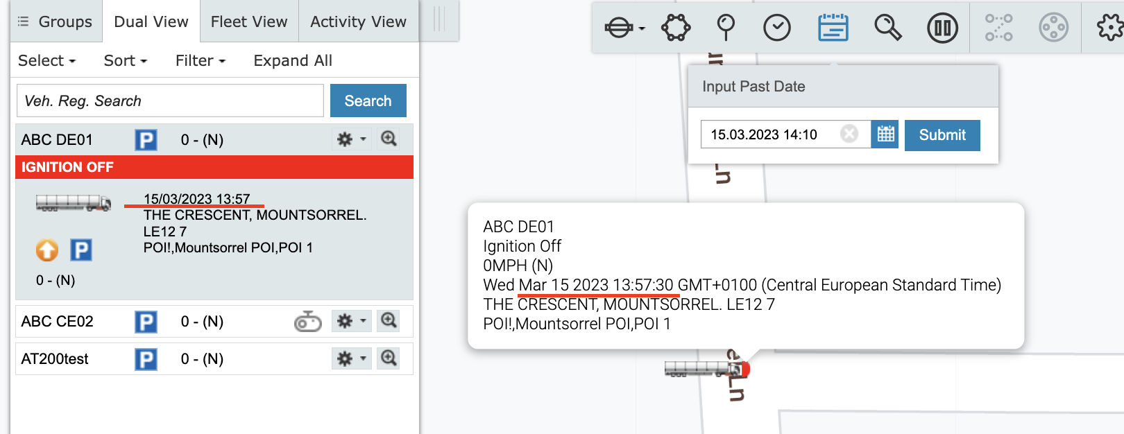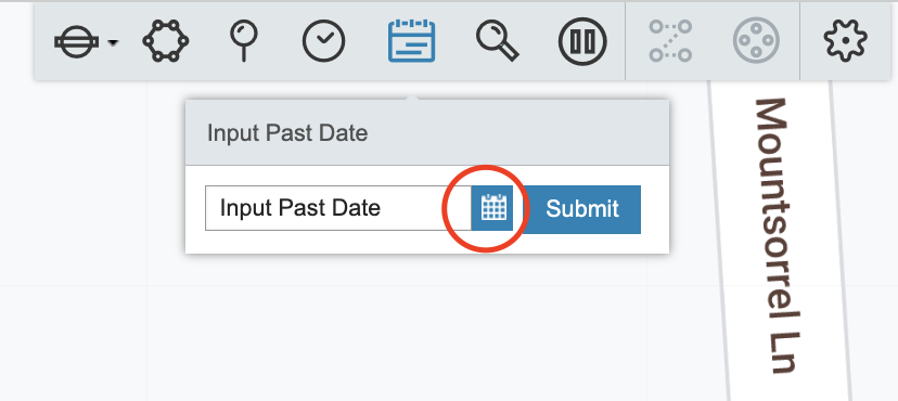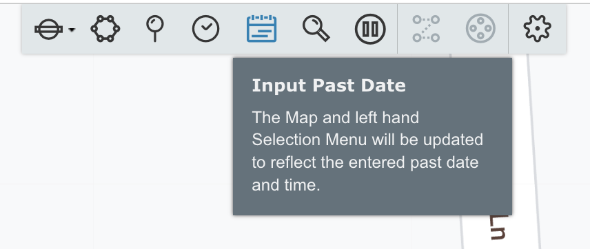 The Map and left hand Selection Menu will be updated to reflect the entered past date and time.