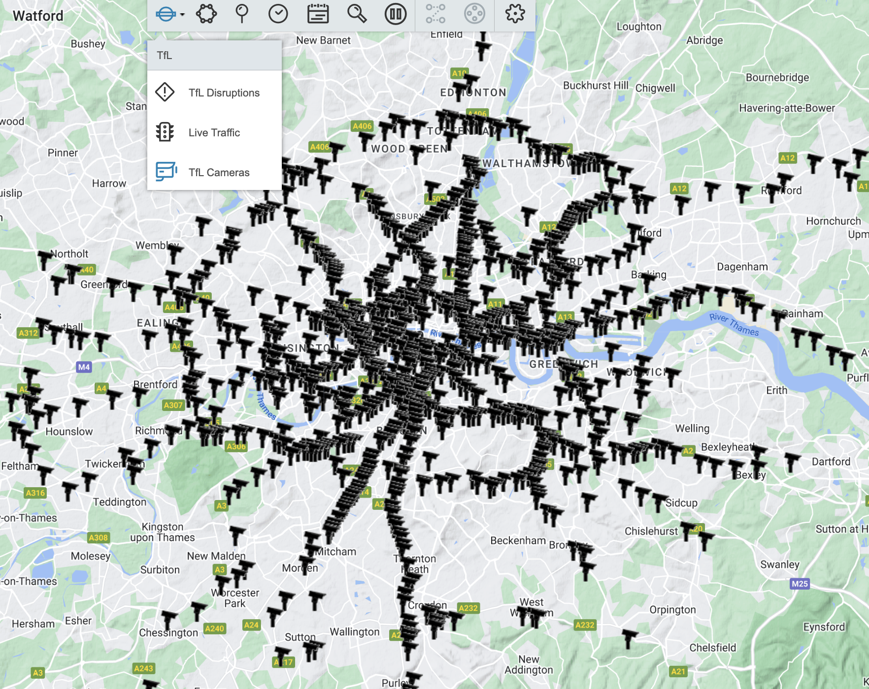 3. TfL Cameras. Click on an icon TfL and select TfL Cameras.